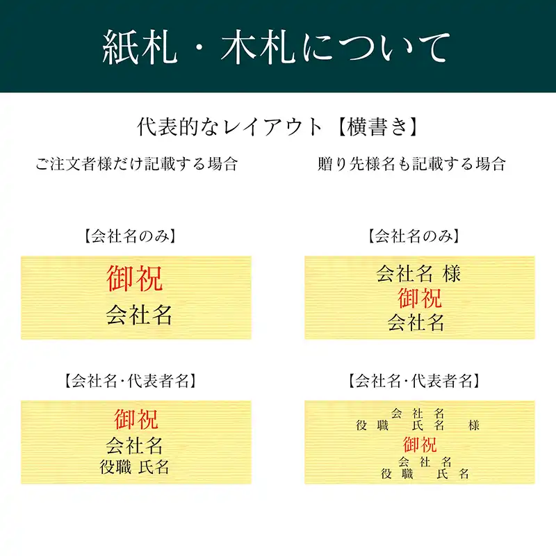 ※商品のサイズに合わせて、木札・厚紙札・カードから最適なサイズを当店で選定、またはオプションの指定通りに作成します。