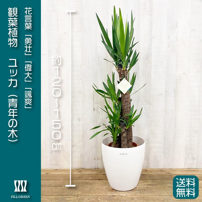 贈答用観葉植物 ユッカ 8号 ラスターポット:材質樹脂 白色